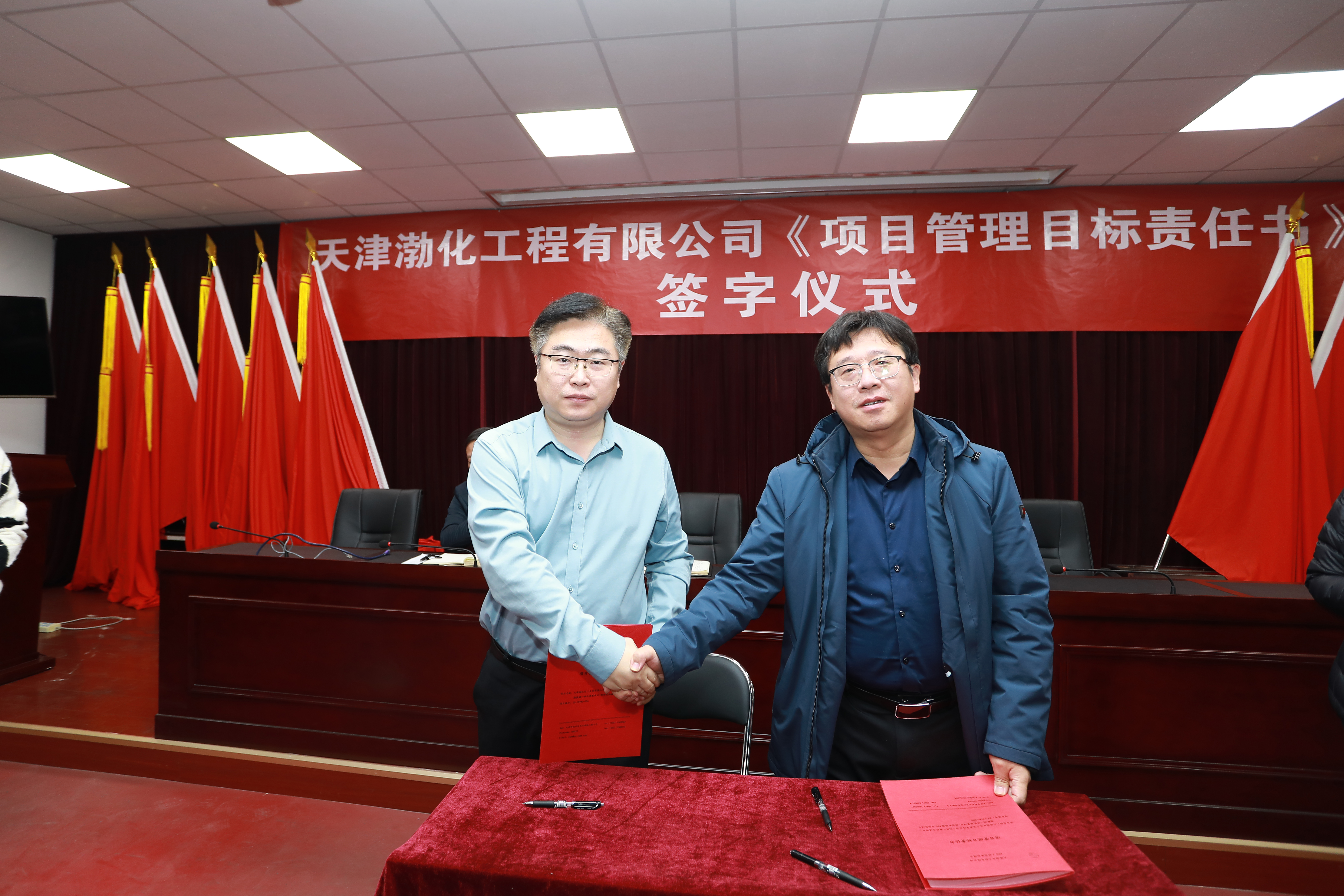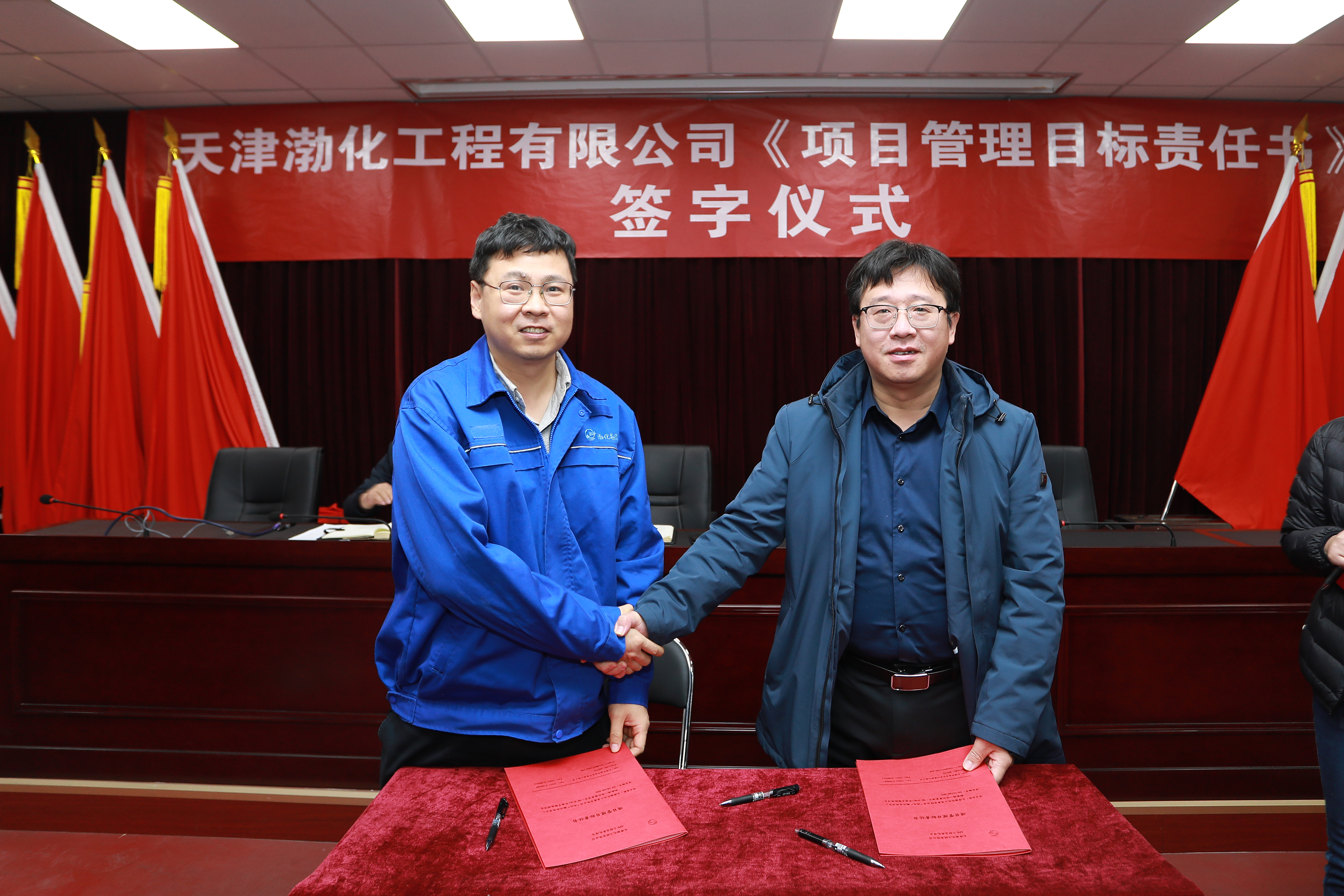 會(huì)上,黨委書記、董事長(zhǎng)詹宏智與“兩化”二期30萬(wàn)噸/年離子膜燒堿項(xiàng)目、渤化發(fā)展綜合實(shí)驗(yàn)樓EPC總承包項(xiàng)目、渤化發(fā)展12萬(wàn)噸/年糊樹(shù)脂裝置項(xiàng)目的項(xiàng)目經(jīng)理簽訂了《項(xiàng)目管理目標(biāo)責(zé)任書》。