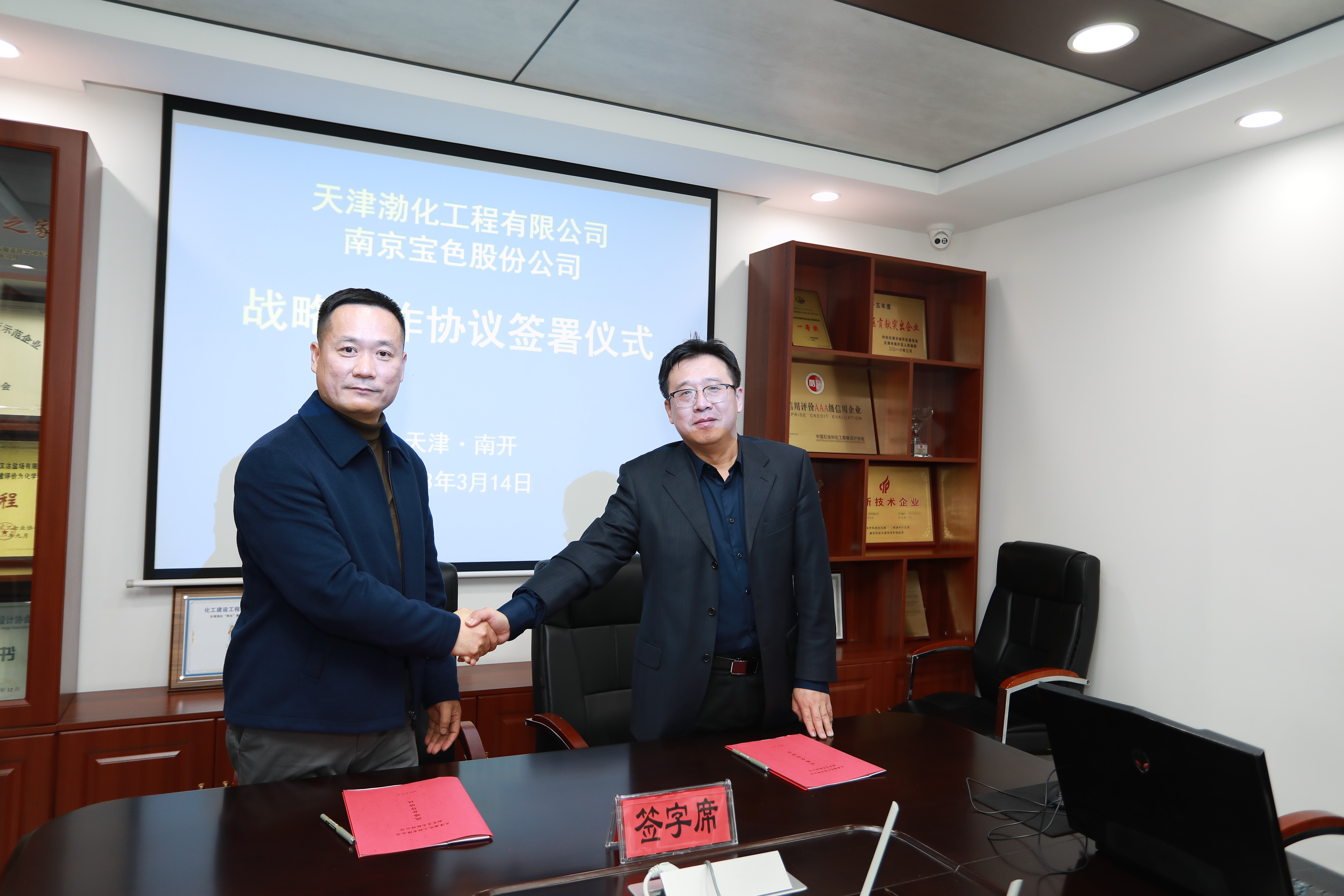 3月14日,南京寶色股份公司副總經(jīng)理、總工程師劉鴻彥、副總經(jīng)理張民、營銷公司總經(jīng)理孫九木等一行到渤化工程進(jìn)行座談交流,雙方簽署了戰(zhàn)略框架協(xié)議。渤化工程黨委副書記…