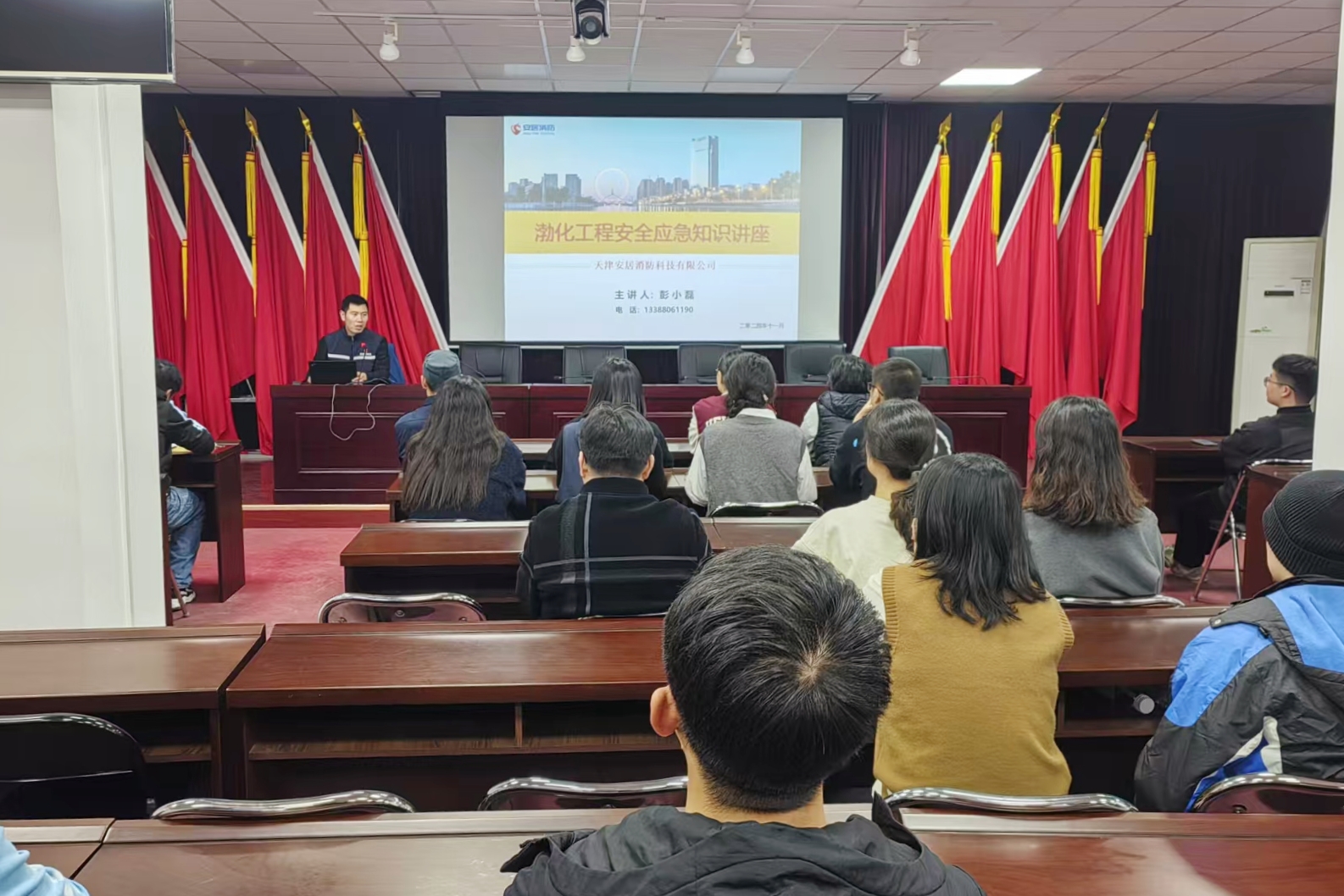為切實(shí)抓好《中華人民共和國消防法》和《中華人民共和國安全生產(chǎn)法》的貫徹落實(shí),提高全員防火安全意識(shí),杜絕各類安全事故發(fā)生,11月15日,渤化工程邀請(qǐng)?zhí)旖蚴邪簿酉揽萍加邢薰九硇±陂_展消防安全講座,作為2024年“消防宣傳月”活動(dòng)的重要組成內(nèi)容?!?