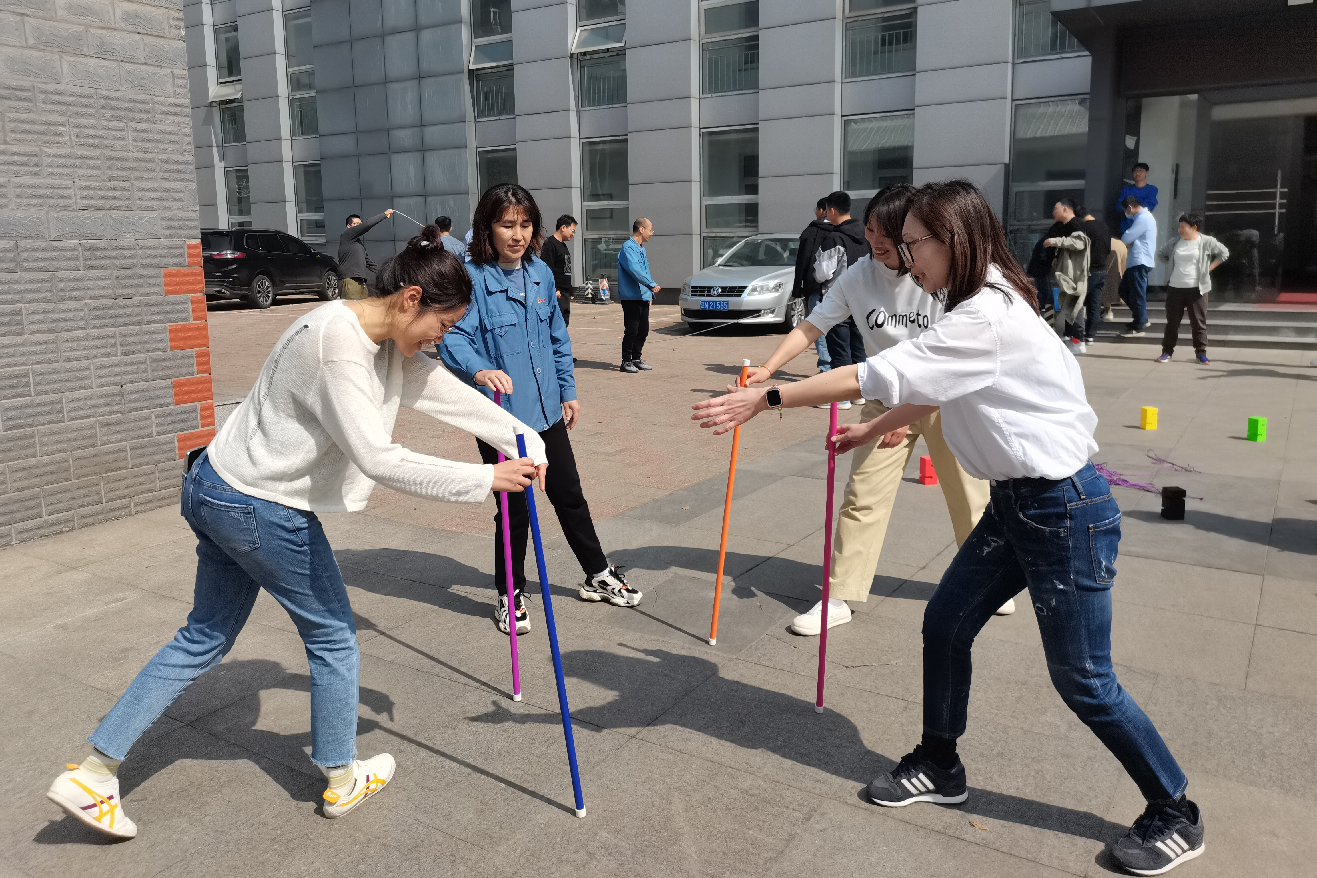運(yùn)動會精心設(shè)計了六個團(tuán)體比賽項(xiàng)目,既考驗(yàn)個人技能,又鍛煉團(tuán)隊(duì)協(xié)作;既突出鍛煉和娛樂并重,又展現(xiàn)健康和趣味同行。“乘風(fēng)破浪”顯英勇,“毽步如飛”見機(jī)敏,“高山流水”考默契,“夾乒乓球”驗(yàn)細(xì)心,“不倒森林”顯穩(wěn)定,“齊心協(xié)力”鑄團(tuán)結(jié)。員工們在賽場上揮灑汗水,觀眾則為他們加油鼓勁,現(xiàn)場氣氛熱烈非凡。