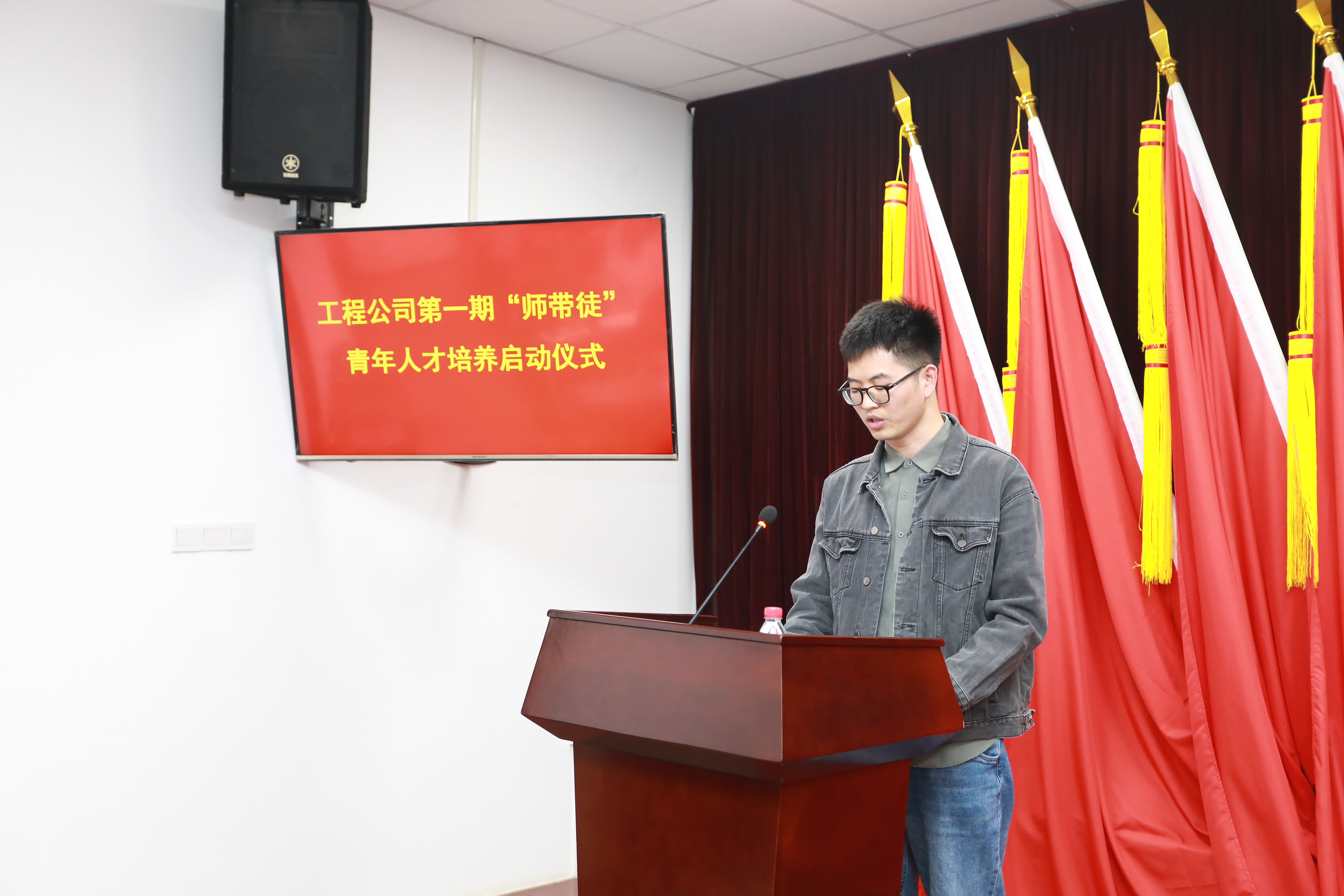 導師代表綜合設(shè)計部馬光輝進行表態(tài)發(fā)言。他表示,在帶徒的過程中,師傅需要教會徒弟基本的知識和技能,培養(yǎng)徒弟的創(chuàng)新能力,實現(xiàn)核心技術(shù)的傳承。