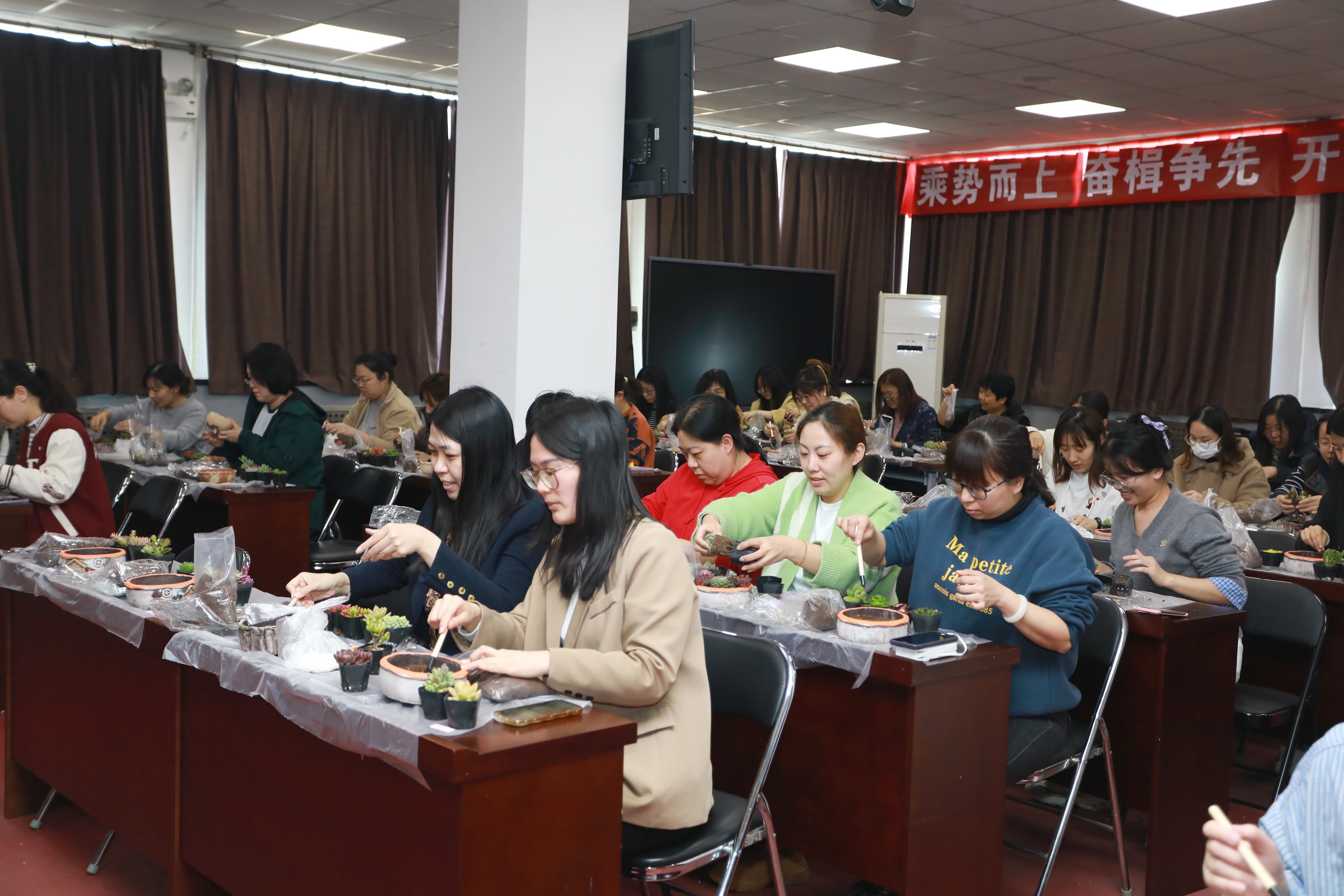 “綠意映紅妝匠心塑春光”——渤化工程 “三八節(jié)”多肉盆栽DIY 2025-03-07 16:35:57 Your browser is not supported 為慶祝第115個(gè)“三八”國(guó)際勞動(dòng)?jì)D女節(jié),豐富女職工精神文化生活,倡導(dǎo)綠色健康生活理念,3月6日渤化工程工會(huì)組織開(kāi)展了“綠意映紅妝匠心塑春光”多肉盆栽DIY主題活動(dòng),百余名女職工齊聚一堂,在春日暖陽(yáng)中感受指尖藝術(shù)與自然之美的融合。 活動(dòng)伊始,專業(yè)園藝?yán)蠋熗ㄟ^(guò)趣味問(wèn)答和案例分享,向女職工們普及了多肉植物的品種特性、養(yǎng)護(hù)技巧及創(chuàng)意盆栽設(shè)計(jì)理念。從土壤配比到澆水頻率,從色彩搭配到空間布局,生動(dòng)實(shí)用的講解讓在場(chǎng)員工躍躍欲試。在DIY環(huán)節(jié),大家化身“園藝設(shè)計(jì)師”,精心挑選吉娃蓮、虹之玉、生石花等萌態(tài)多肉,搭配多彩陶盆、卡通擺件等素材,有的組合出“沙漠花園”的野趣,有的打造出“童話森林”的治愈,將想象力注入方寸綠意之間。 女職工們紛紛表示,此次活動(dòng)不僅讓她們掌握了園藝知識(shí),更體驗(yàn)到動(dòng)手創(chuàng)作的成就感,親手制作盆栽既能減壓又能裝點(diǎn)辦公室,非常有意義。渤化工程工會(huì)以“三八節(jié)”為契機(jī),通過(guò)特色文化活動(dòng)展現(xiàn)女性風(fēng)采,倡導(dǎo)低碳環(huán)保理念,助力打造幸福企業(yè)。