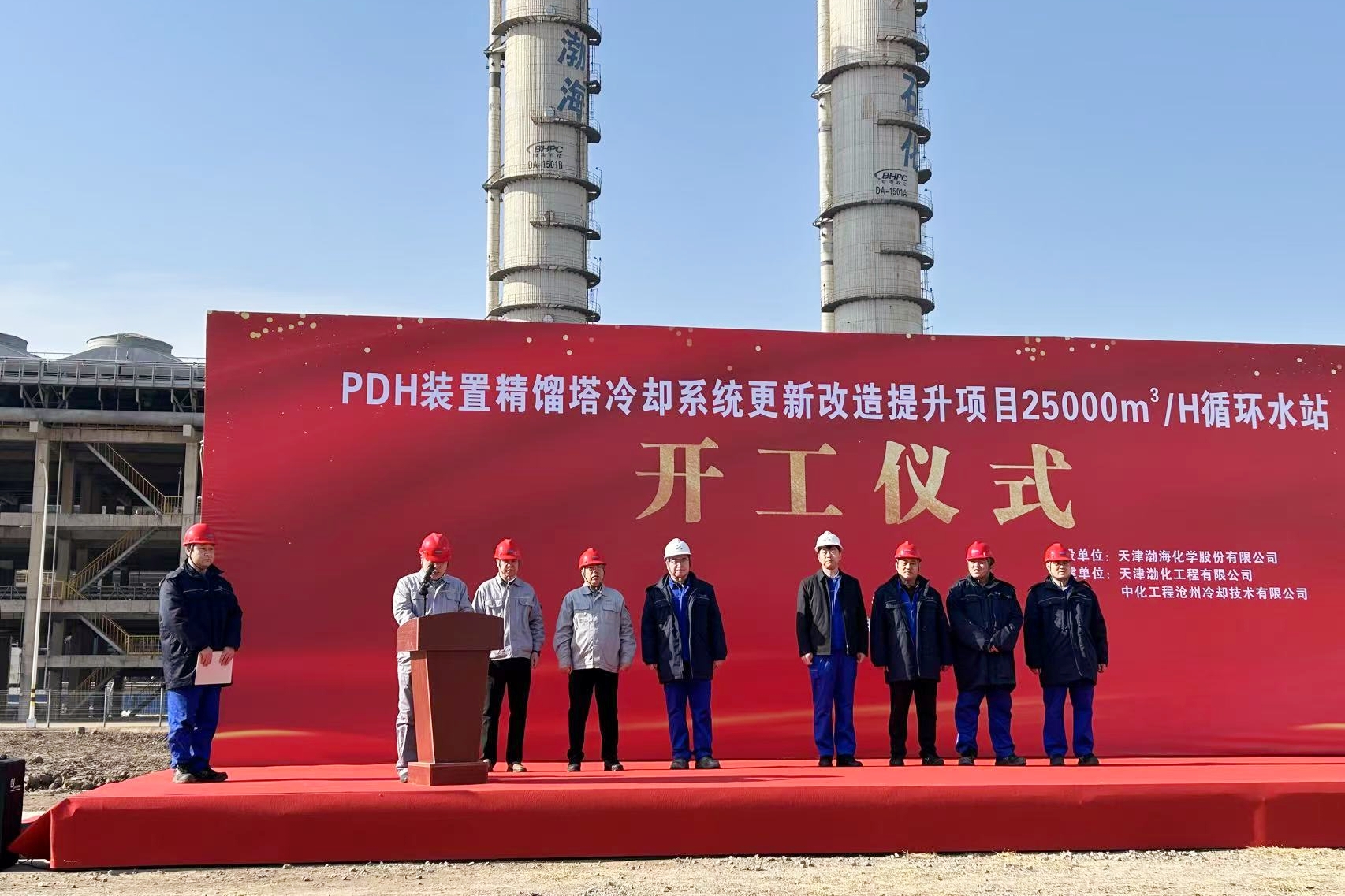 2025年3月4日,天津渤化工程有限公司承攬的“天津渤海石化有限公司PDH裝置精餾塔冷卻系統(tǒng)更新改造提升項(xiàng)目25000m3/h循環(huán)水站EPC工程總承包項(xiàng)目”開工儀式順利舉行?!?