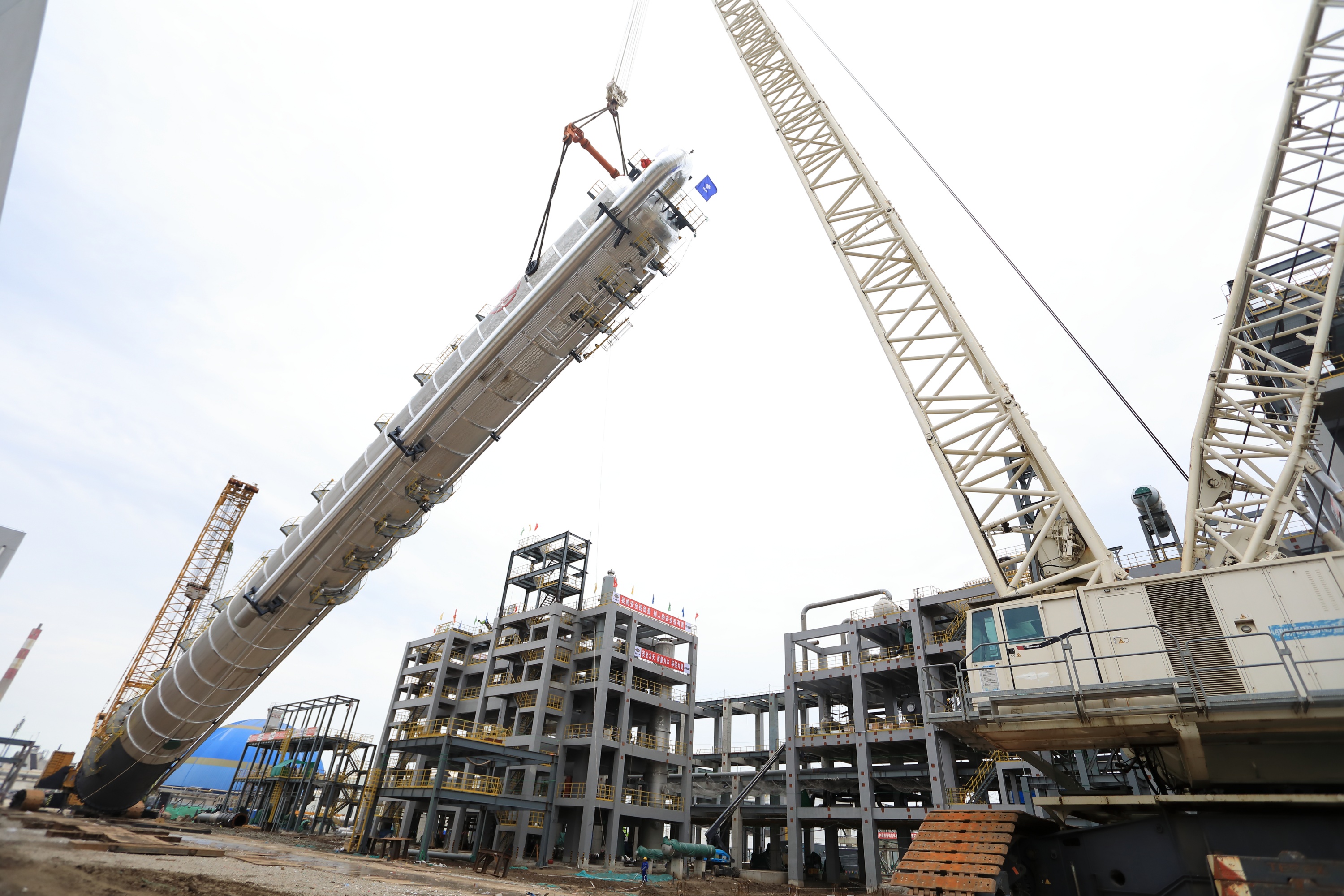 12月7日,渤化工程在現(xiàn)場(chǎng)制造的慶陽(yáng)同欣輕烴深加工項(xiàng)目中的15萬(wàn)噸/年順酐裝置第三臺(tái)反應(yīng)器成功完成翻轉(zhuǎn)吊裝作業(yè)。自此,三臺(tái)反應(yīng)器的翻轉(zhuǎn)吊裝作業(yè)都已完成,現(xiàn)場(chǎng)制造工作進(jìn)入到了新的沖刺階段?!?